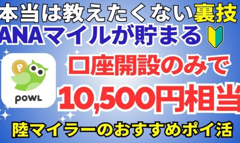 陸マイラーの皆さん、緊急ポイントアップ情報をお送りいたします。 ポイントサイトのPOWLで口座開設案件で、なんと怒涛の… 19,000円分のポイントがもらえます( ゚Д゚;)マジ…? 今回の内容はかなり条件が緩いのです…