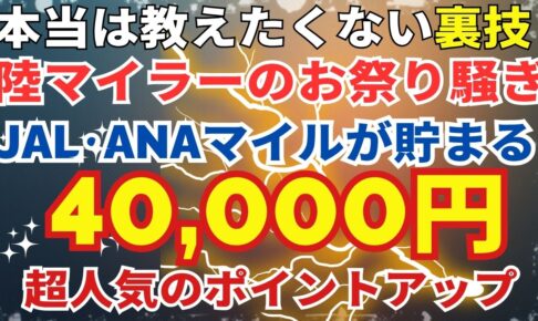 JALマイルやANAマイルを貯めている陸マイラーにお得な案件のご紹介です。 ポイントサイトのモッピーで緊急ポイントアップが発生しています。この案件でもらえるポイントはなんと… 「20,000円相当」です。( ゚Д゚;)フ…