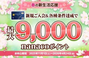 カード会社側のキャンペーンで最大9,000pt(9,000円相当)を獲得可能!
