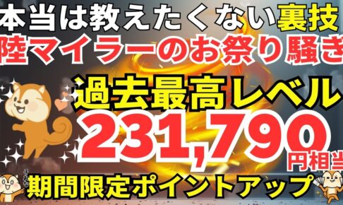陸マイラーの皆さん、マイルは貯まってますか?今月のポイントサイトのおすすめ案件をご紹介します。 ポイントサイトのモッピーで超人気案件が復活しています。ほぼノーリスクのこの案件、今回はなんと… 13,000円還元で登場しま…