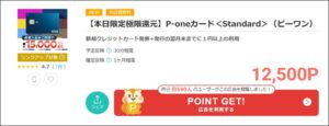 ポイントサイトのモッピーでにP-oneカードの発行がポイントアップしています。獲得できるポイントは12,500pt(12,500円相当)となっています。