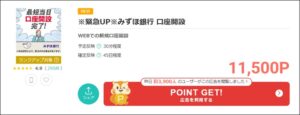 みずほ銀行の口座開設のみで11,500円還元を獲得。