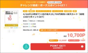 今回はモッピー経由の発行でもらえる10,000円とチャレンジボーナス700円、入会ボーナスの2,000円、さらに楽天カード側のキャンペーンを全部合わせると…合計22,700円相当を獲得できるのです。