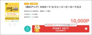 ポイントサイトのモッピーでJCBカード S(ジェイシービーカードエス)の発行が10,000pt(10,000円相当)の還元になっています。