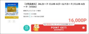 モッピーを経由して発行するとどれだけお得なのか?下記の画像をご覧ください。現在モッピーに掲載されているJALカード CLUB-Aカード・CLUB-Aゴールドカードの広告になります。