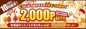 なんと初めて1名紹介で2,000ポイントGETになります(*^_^*)