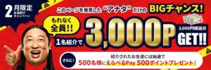 なんと1名紹介で3,000ポイントGETになります(*^_^*)