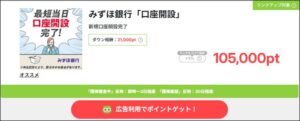 ポイントサイトのPOWLで「みずほ銀行の口座開設」が105,000pt(10,500円相当)と高騰しています。(POWLは10pt=1円の価値)