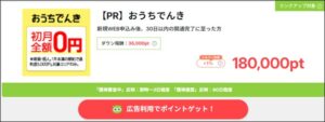 ポイントサイトのPOWLでおうちでんきが180,000pt(18,000円)の還元になっています。
