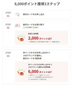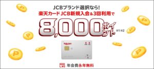モッピー経由でもらえるポイントとは別に楽天カードの独自のキャンペーンで8,000円相当の楽天ポイントをもらうことができます。